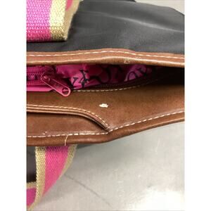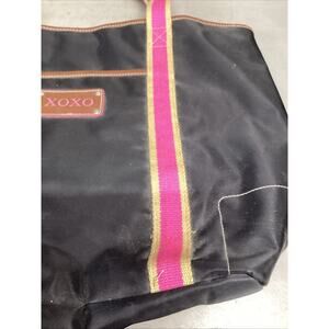 Vintage XOXO Pink Black Tote Bag - 18.5x14”. These are in exterior has a couple stains but the interior is in excellent condition and very clean. There is 1 outer pocket, 11 inner pockets several being very small and 1 main compartment.