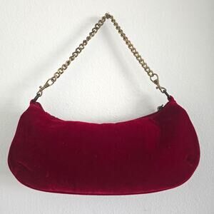 Vintage Y2K Burgundy Red Velvet Gold Chain Purse with Charms Shoulder Bag