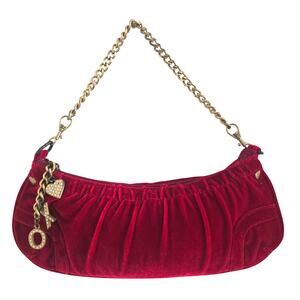 Vintage XOXO Y2K Burgundy Red Velvet Gold Chain Purse with Charms Shoulder Bag