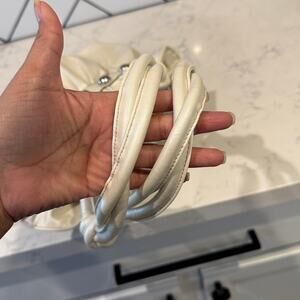 Vintage XOXO Y2K faux leather shoulder hobo bag knotted handles shimmery white