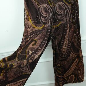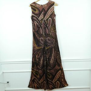 Vintage XS Jumpsuit 70s Brown Paisley Wide Leg Hippy Boho Maximalist Flare Retro