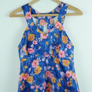 Vintage XS Maxi Dress 70s Blue Floral Hippy Hostess Handmade Retro Maximalist