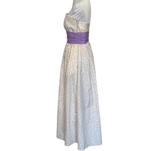 Vintage XS/S 1980s AJ Bari Strapless White and Lilac Gown