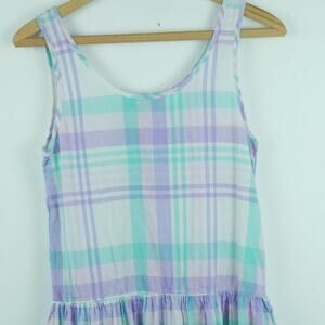 Vintage XXS Dress 80s Midi Pastel Plaid Drop Waist Cottagecore Preppy Cotton Pinafore