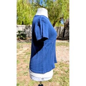 Vintage Xhilaration Ribbed Textured S/S Cotton Navy Blue Petite Large Shirt EUC