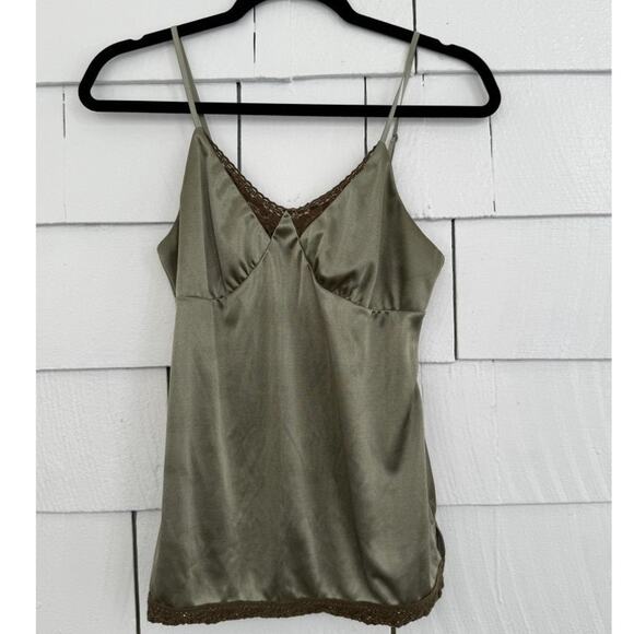 Vintage Xhilaration Women's Med Y2K Green Babydoll Cami Satin Dainty Coquette Tank Top w/ Crochet / Knit / Lace Trim.