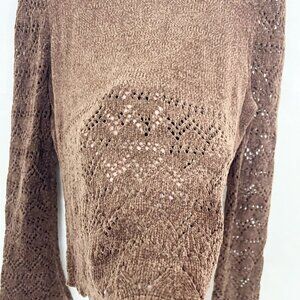 Vintage Xhilaration Y2K Brown Chenille Pointelle Pullover Sweater Boho Indie Siz