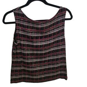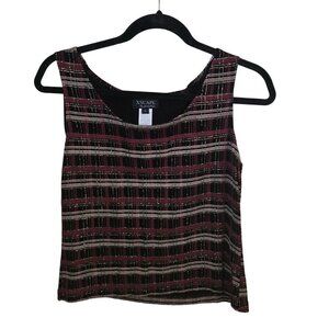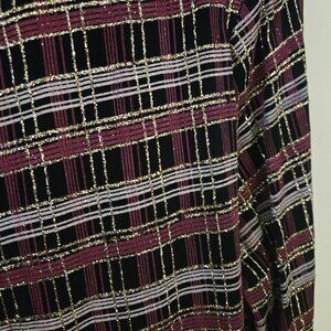 Vintage Xscape Unique Plaid Burgundy Gold Glitter Twin Set Blazer Tank Size L