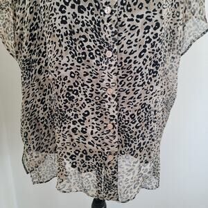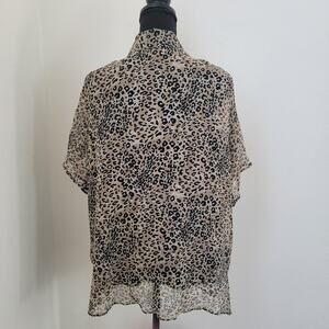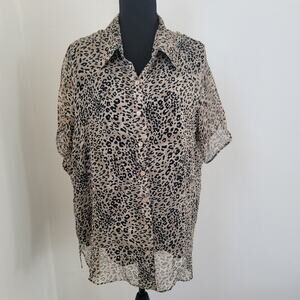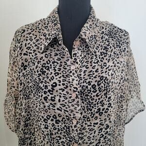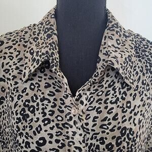 Vintage Y2K 00s 90s 100% Silk Sz 1X Leopard Print Button Up Short Sleeve Lined