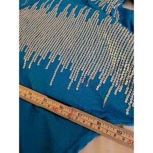 Vintage Y2K 00s Bebe Small S Teal Sequin Embellished Bling Cold Shoulder Top