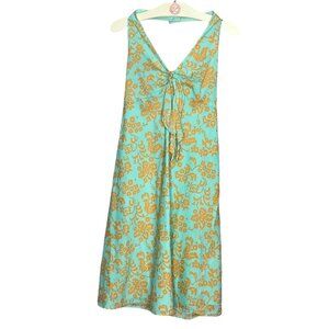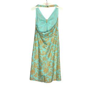 Vintage Y2K 00s Gap Size 4 Green Mustard Floral Retro Cotton Halter Sun Dress