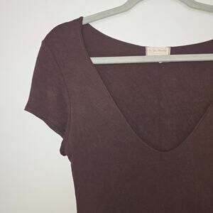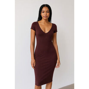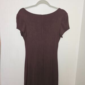 The Vintage Y2K 00s See You Monday Large Brown Stretch Bodycon Dress is a stylish and comfortable option for casual occasions. Made from a spandex and cotton blend jersey fabric, this midi-length dress features a scoop neckline, short sleeves, and a pullover closure. The solid brown color and bohemian theme make it a versatile piece for summer, fall, and spring seasons. With its stretchy material and bodycon style, this vintage dress from the brand See You Monday is sure to make a statement in any wardrobe.