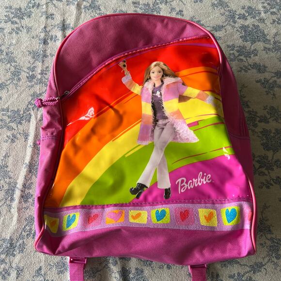 Vintage Y2K '02 Children's Barbie Backpack Rainbow Pink VGUC Nostalgia