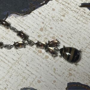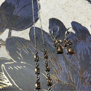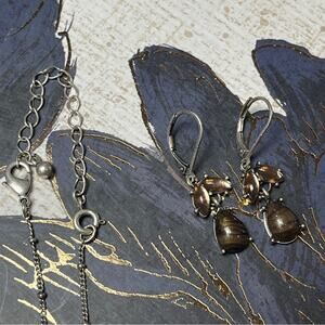 Vintage Y2K 2000s AVON Silver and Brown Shimmering Necklace and Earring Set D1