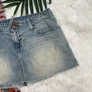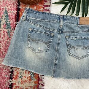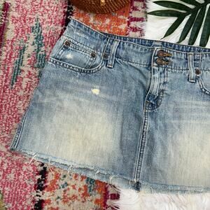 Vintage Y2K 2000s Abercrombie Blue Faded Mini Micro Denim Jean Skirt 6 Raw Edge