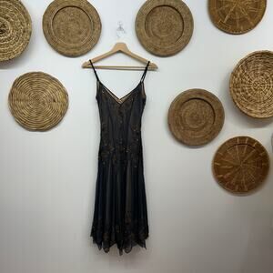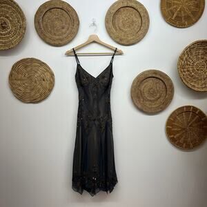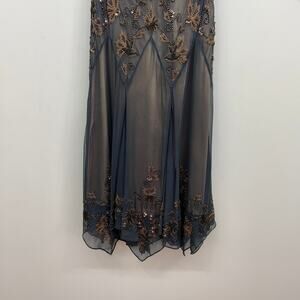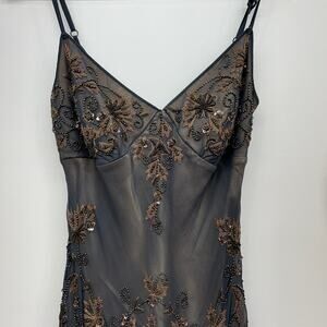 Vintage Y2K 2000s Adrianna Papell Gray Amazing Beaded Silk Dress P6 Fairy Whimsy