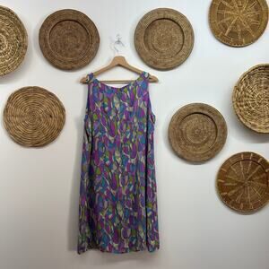 Vintage Y2K 2000s Apostrophe Purple Green Funky Retro Sleeveless Mini Dress 16