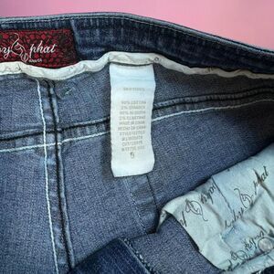 Insane iconic vintage Y2K 2000s Baby Phat mcbling denim shorts with embroidered logo on the butt pocket and silver on the waist🎀
