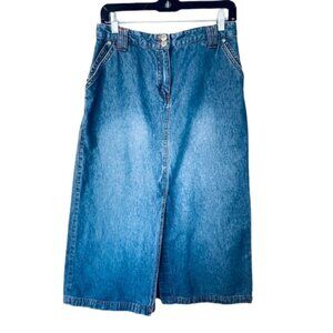 Vintage Y2K 2000's Bill Blass Denim Maxi Skirt Front Slit 6 Petite