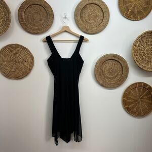 Vintage Y2K 2000s DEB Black V-Neck Asymmetrical Hem Sleeveless Mini Dress Medium
