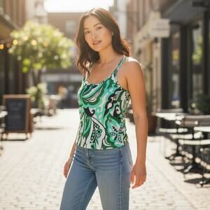 Vintage Y2K 2000s Dolce & Gabbana Funky Hippie Green Blue Knit Tank Top Medium