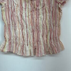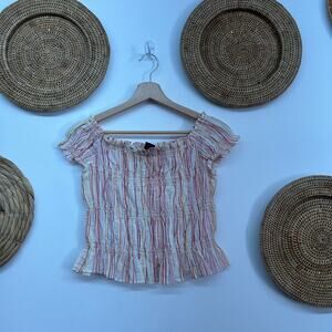 Vintage Y2K 2000s Express Pink Striped Smocked Cropped Off Shoulder Crop Top 7/8
