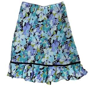 Vintage Y2K 2000s Floral Midi Skirt from Casual Corner. Cute blue and purple print.