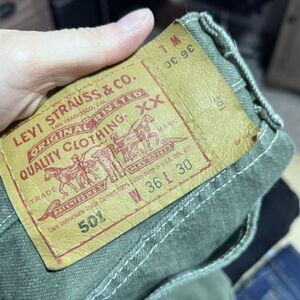 Vintage Y2K 2000s Levi's 501 button fly Men's Green Denim Jeans Size 36 Sample