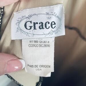 The Tag says large but it is a vintage large. It really would be best on todays Medium. Beautiful sheer neck with nude colored lining gives the illusion of being sheer for the rest of the gown.
