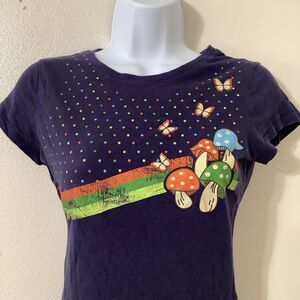 Vintage Y2K 2000s Mushroom Butterfly Retro Rainbow Hippie Graphic Baby Tee M