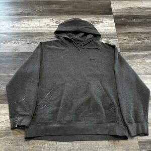 Vintage Y2K 2000s Nike Gray Mens M Mini Nike Swoosh Silver Tag Pullover Hoodie
