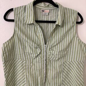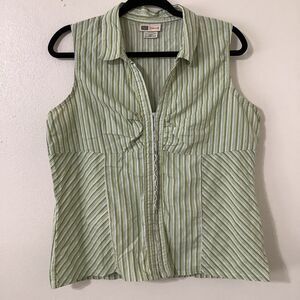 Vintage Y2K 2000s Preppy Retro Green Stripe Light Academia Sleeveless Blouse XL