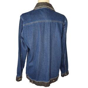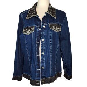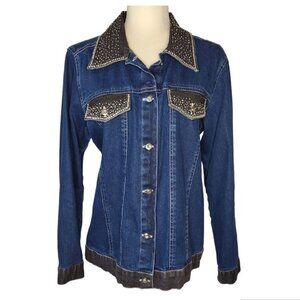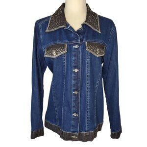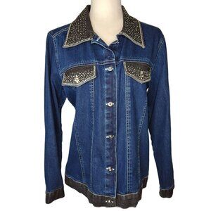 Vintage Y2K 2000s Quacker Factory Denim Jean Jacket Small Studded Collar Sequin