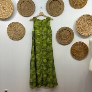 Vintage Y2K 2000s Santa Fe Green Funky Print Lined Sleeveless Midi Dress Medium White Lotus vibes