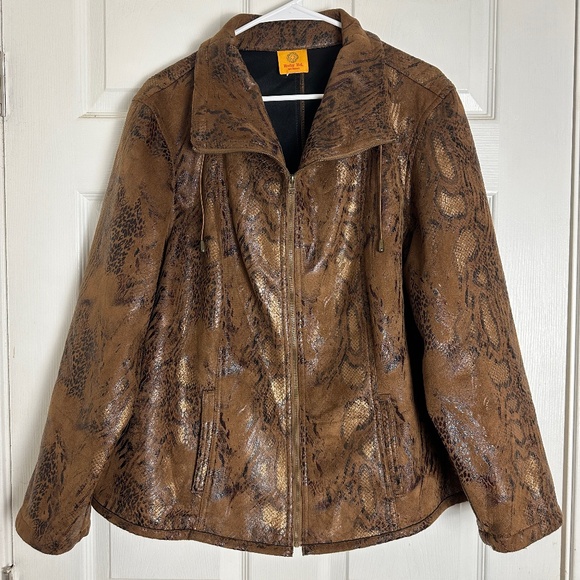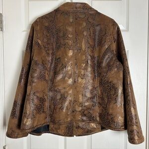 Vintage Y2K 2000s Snakeskin Leopard Print Suede Long Sleeve Jacket Women Size XL
