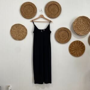 Vintage Y2K 2000s Victoria's Secret Black Sleeveless Slit Midi Slip Dress Large