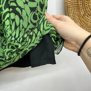 Vintage Y2K 2000s Worthington Green Black Ruffle 100% Silk Floral Flower Above Knee Mini Skirt 12 Lined