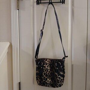 Vintage Y2K 2000s XOXO leopard print purse brown black patent leather accents