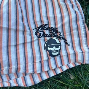 Vintage Y2K 2005 Harley Davidson Women's Boxer Shorts M Striped Skulls