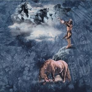 vintage, VTG, retro, 80s, 90s, Y2K, casual, everyday, graphic, short sleeve, crewneck, tie dye, horses, spiritual, Indian, Native American, tribe, tribal, Sundance, prairie, boho-inspired, boho, bohemian, hippie, free spirit, Southwestern, western, Aztec, desert, Navajo, headdress, feathers, wild horses, USA