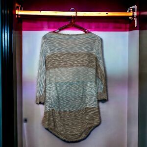 Chic 212 New York TWO ONE TWO Y2K Vintage Lightweight Sweater in a vibrant tropical blue and tan striped design. Crafted with premium quality fabric, this sweater offers comfort and style in equal measure. Brand new without tags, it's never been worn and ready to be part of your collection. The XL size ensures a relaxed and flattering fit for all-day comfort. Perfect for layering or wearing solo, this sweater is a versatile addition to any closet. Don't miss out on this stylish piece! #212NewYork #TropicalSweater #StripedSweater #XLSize #NWOT #PoshmarkFashion