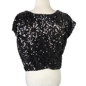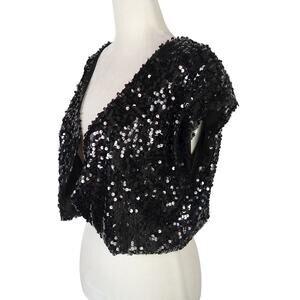Vintage Y2K 2b Bebe Black Sequin Beaded Shrug Bolero Jacket