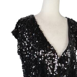 Vintage Y2K 2b Bebe Black Sequin Beaded Shrug Bolero Jacket XL