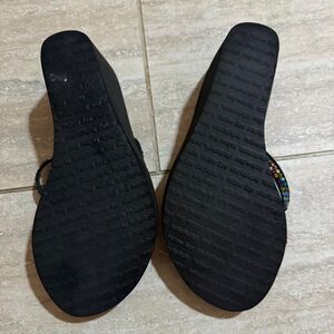 Vintage Y2K 90s Black chunky Platform Sandal Flip flops rainbow Bling Sz 8 bratz