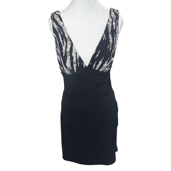 Vintage Y2K 90s City Triangles Mini Tiered Dress Size Medium Zebra Lace Mob Wife Gala HOCO Pencil Bodycon