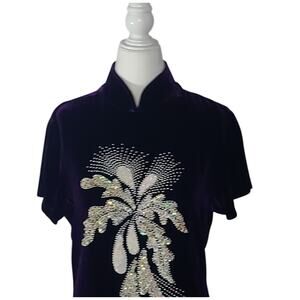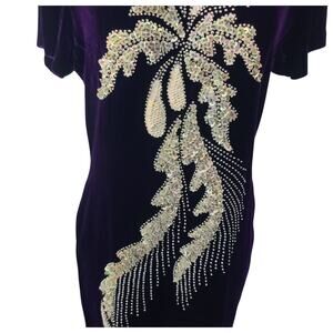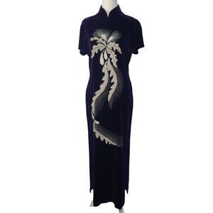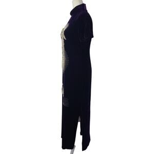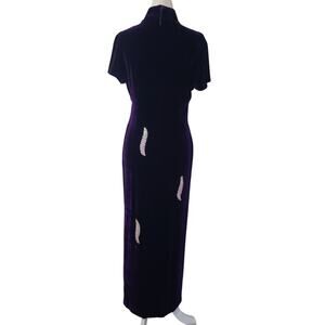 Vintage Y2K 90s Dark Purple Velvet Embellished Maxi Dress US 8