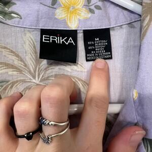 Vintage Y2K 90s Erika Tropical Floral Palm Tree Pocket Hawaiian Shirt Sz Medium