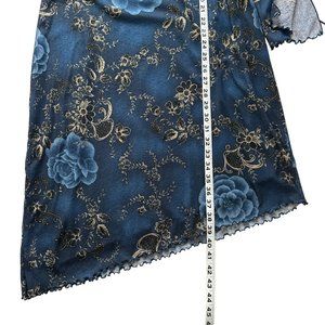 Vintage Y2K 90s Expressions MEDIUM Blue Floral Lettuce Hem V-Neck Midi Dress