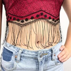 Vintage Y2K 90s Formula X Lace Mesh Fringe Whimsigoth Going Out Top Cropped Sz S