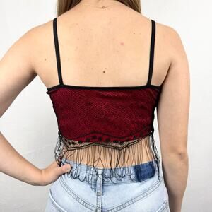 Vintage Y2K 90s Formula X Lace Mesh Fringe Whimsigoth Going Out Crop Top Sz S